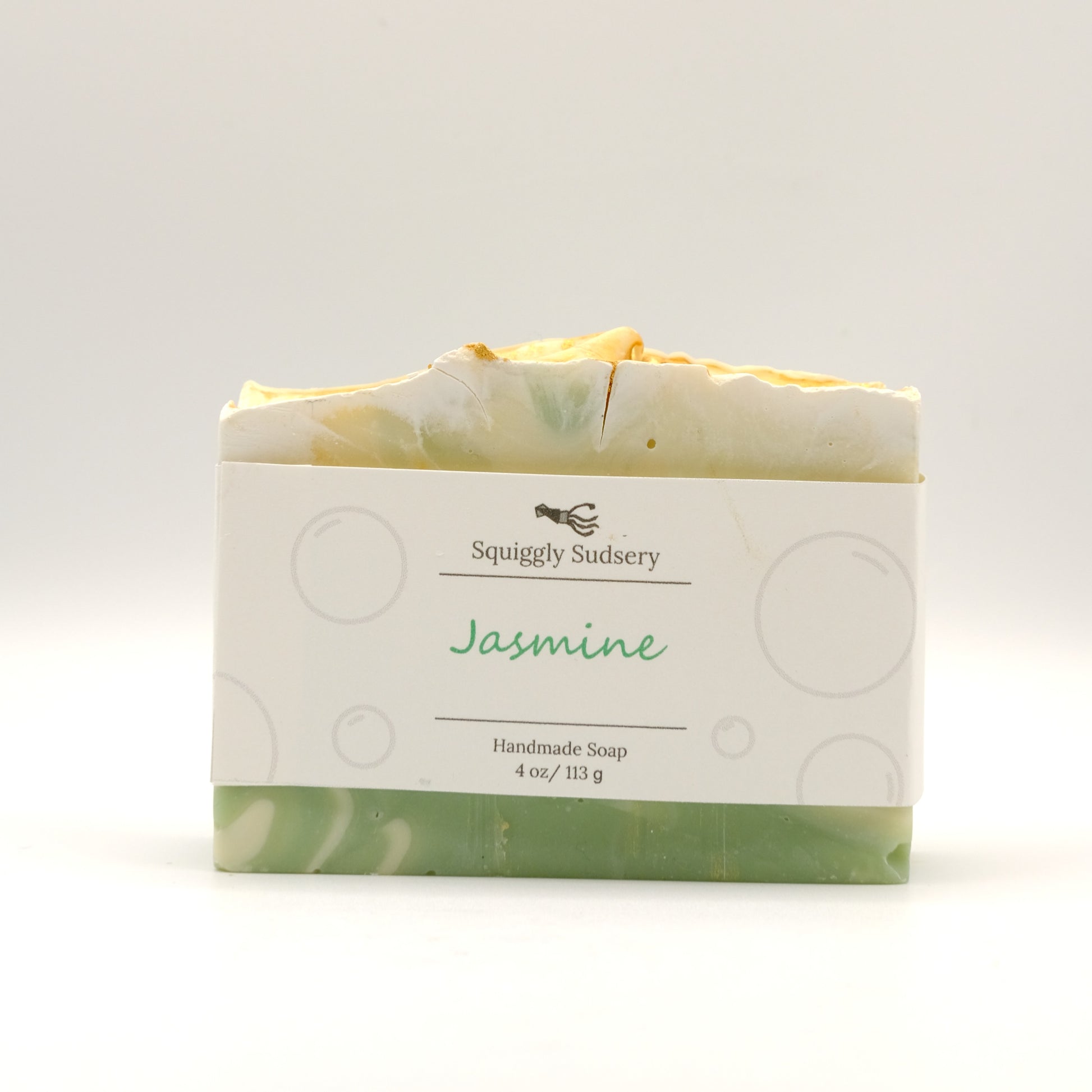This scent is a floral scent with only jasmine. Handmade soap made with mango butter and scented with Jasmine flowers. Palm-free and phthalate free