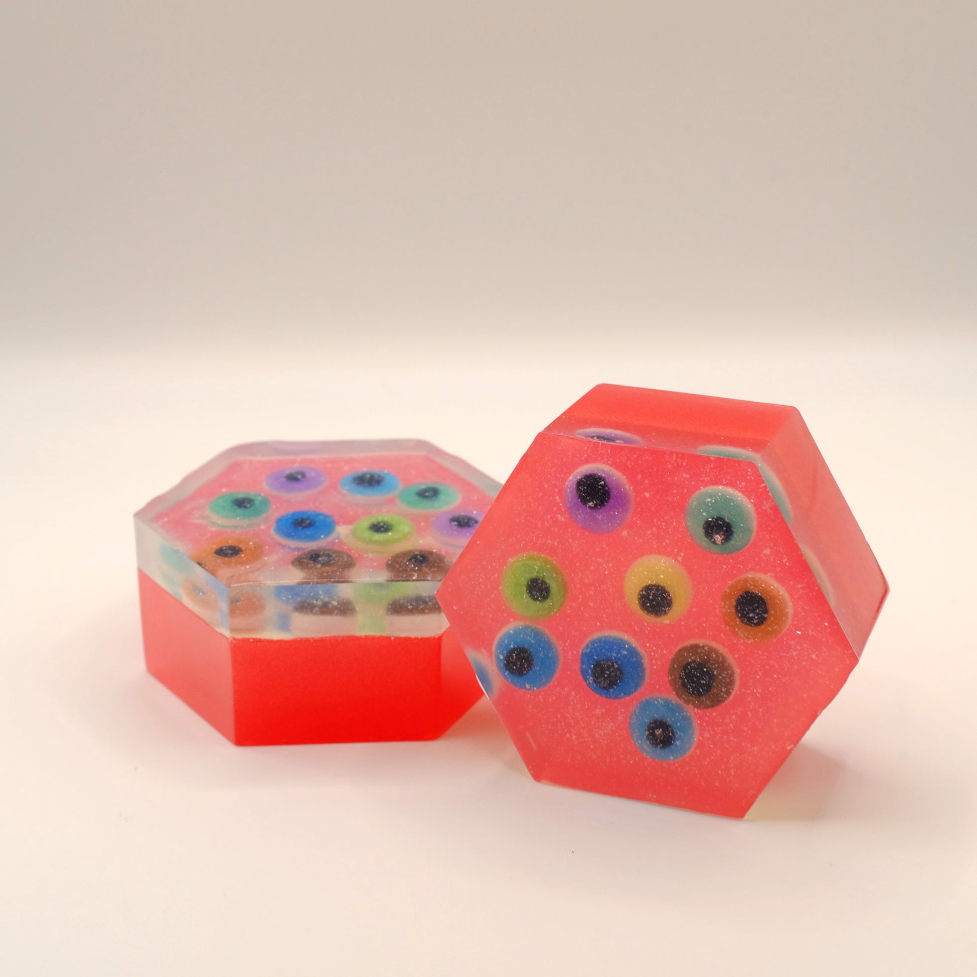 Beware! These are not the classic cereal shape; this Halloween edition features little eyes floating in mysterious red liquid. Scent is sweet and tart apples with a hint of floral. Phthalate Free.